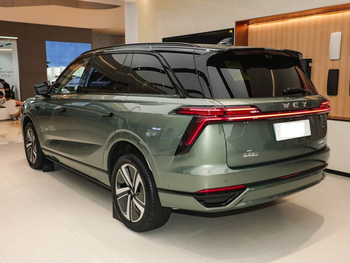 再来看车身侧面部分,车身尺寸达到 5156×1980×1805mm,3050mm 的超长轴距奠定中大型 SUV 的空间底子。侧面线条以舒展为核心,一条平直的腰线从前大灯延伸至后尾灯,视觉上拉长车身比例,配合悬浮式车顶与镀铬窗框饰条,提升整体精致感。21 英寸多辐式轮毂为中高配专属,轮胎规格兼顾抓地力与滤震需求,而合理的离地间隙设计,使其既能应对城市复杂路况,又能保障上下车便利性。车身提供常规纯色与黑武士专属配色,其中黑武士版采用全黑涂装搭配亮黑轮毂,营造沉稳运动的视觉效果。值得一提的是,车门采用大开口角度设计,配合较低的门槛高度,老人弯腰上车、儿童跨坐入座都更轻松,细节处彰显家用属性。